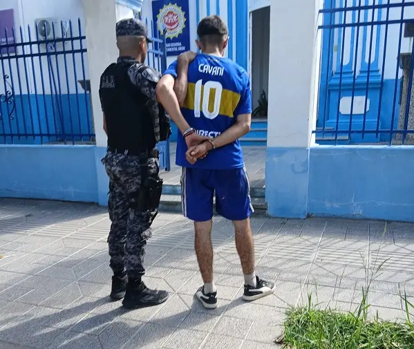 Al llegar al lugar, el personal policial divisó a un joven de 18 años, vestido con indumentaria del Club Boca Juniors, que intentaba ocultarse entre la vegetación de la zona.