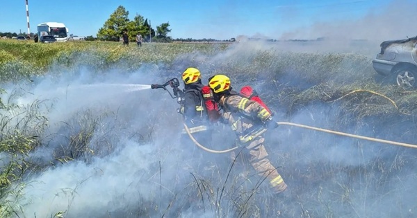Un automóvil tomó fuego al costado de la ruta 9 y afectó una zona de pastizales que también se incendiaron.