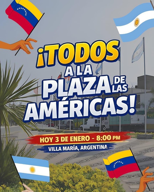 Tras los hechos ocurridos en Venezuela, vecinos de ese país que residen en Villa María se movilizarán este sábado 3 de enero en un sector de la costanera.